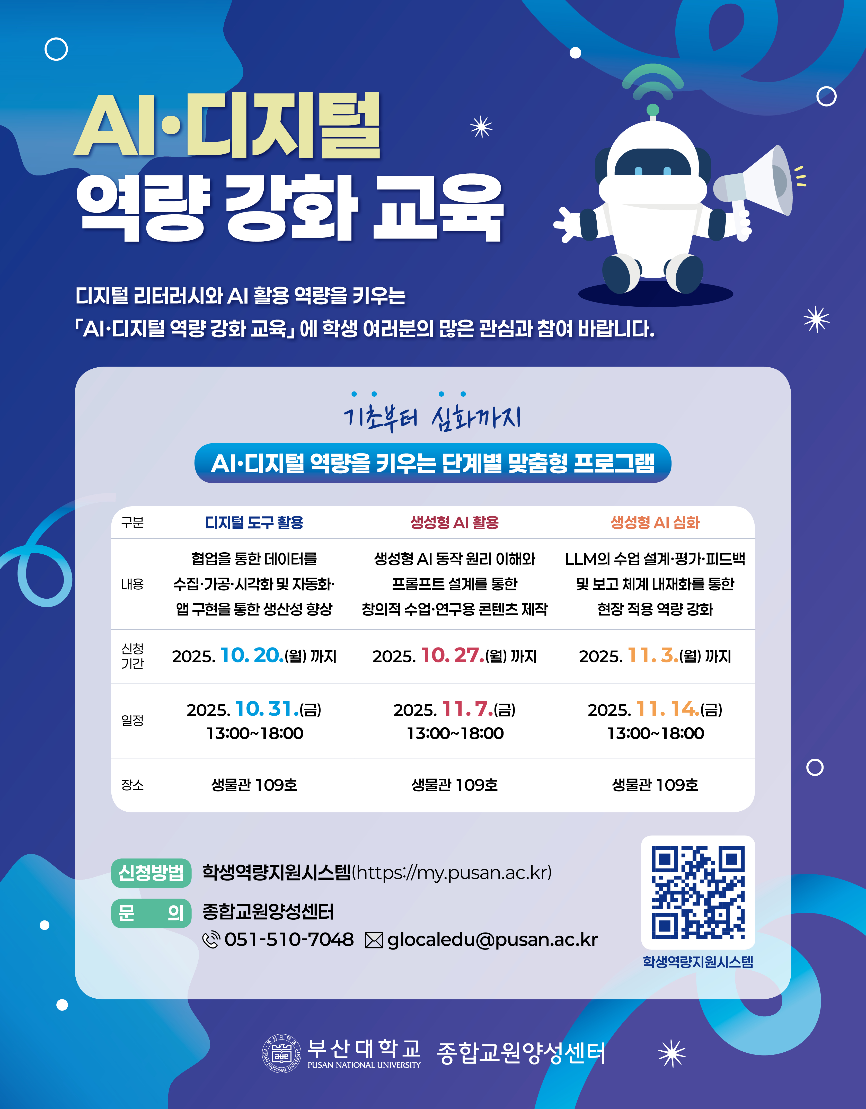 fnctId=bbs,fnctNo=4001 [글로컬]「AI·디지털 역량 강화 교육」 안내 date 2025.10.14 name 이현정 e-mail view 19 첨부파일 첨부파일이(가) 없습니다.
